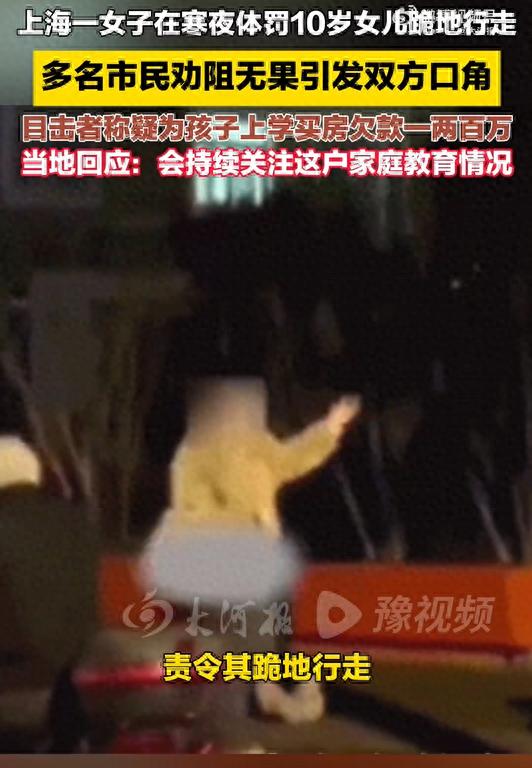 近日,上海市民许先生反映,当晚9点多体感接近零摄氏度的天气里,一位母亲责令10岁左右的女儿跪地行走。