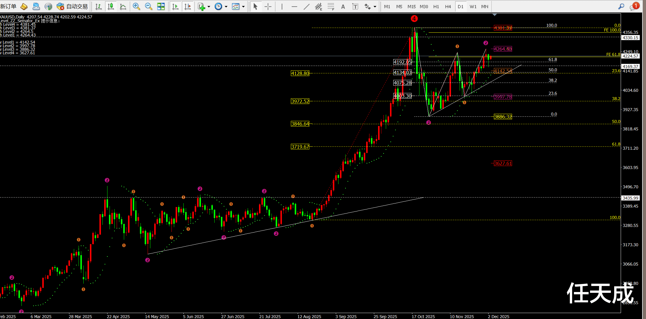【1】 回撤4212-13附近多一次,防守4205即可,目标看4230-4245-4250(这个4小时内)