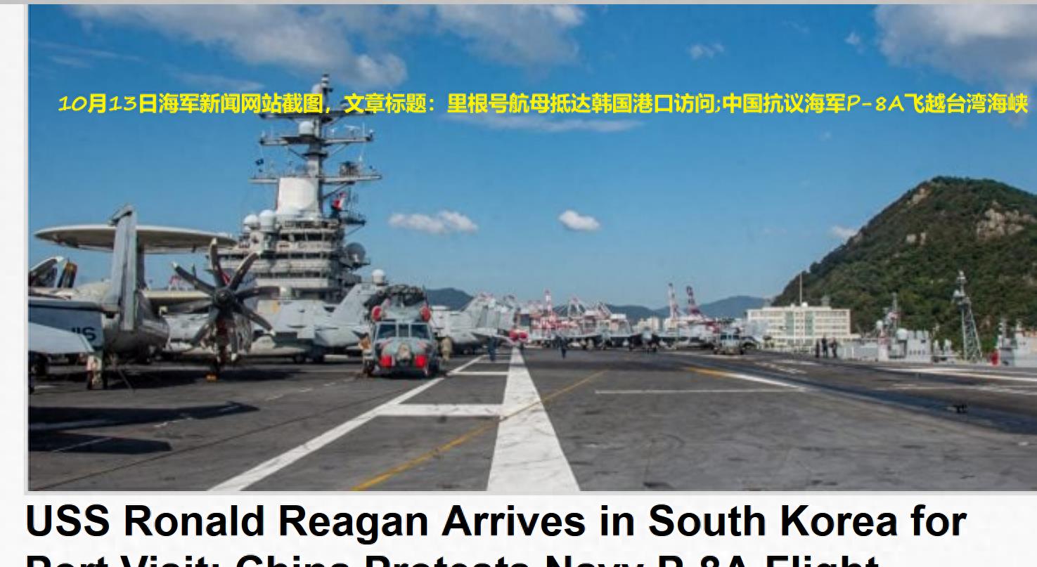 美海军“里根”号航母打击群进入韩国的釜山作战基地港口,美军一架P-8A“海神”反潜巡逻机过台湾海峡并炒作,其意图可谓非常明显,有警告他国在此敏感时刻,不要轻举妄动之意,从而让其陷入顾此失彼的不利态势。