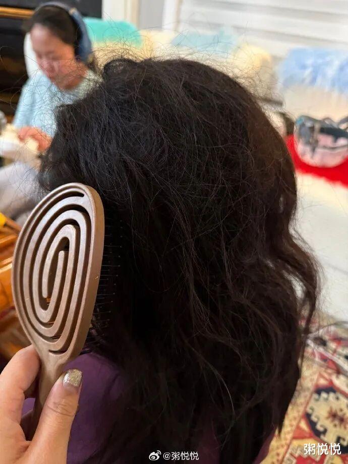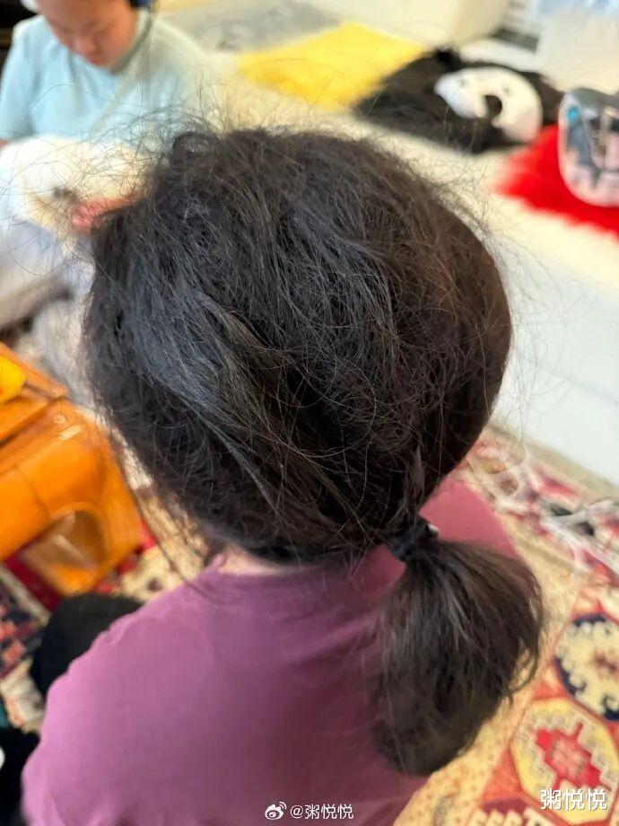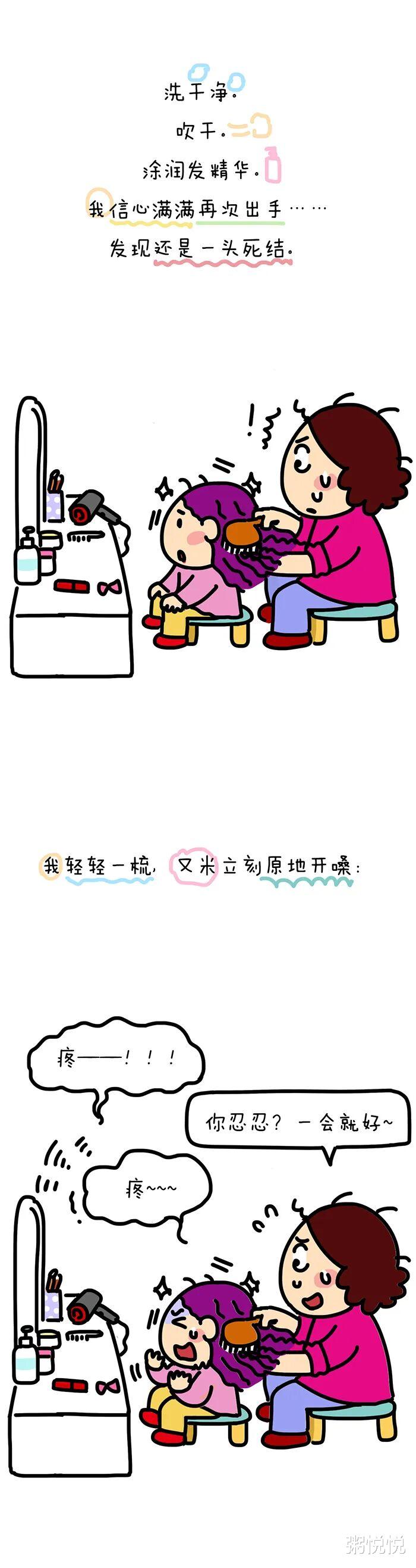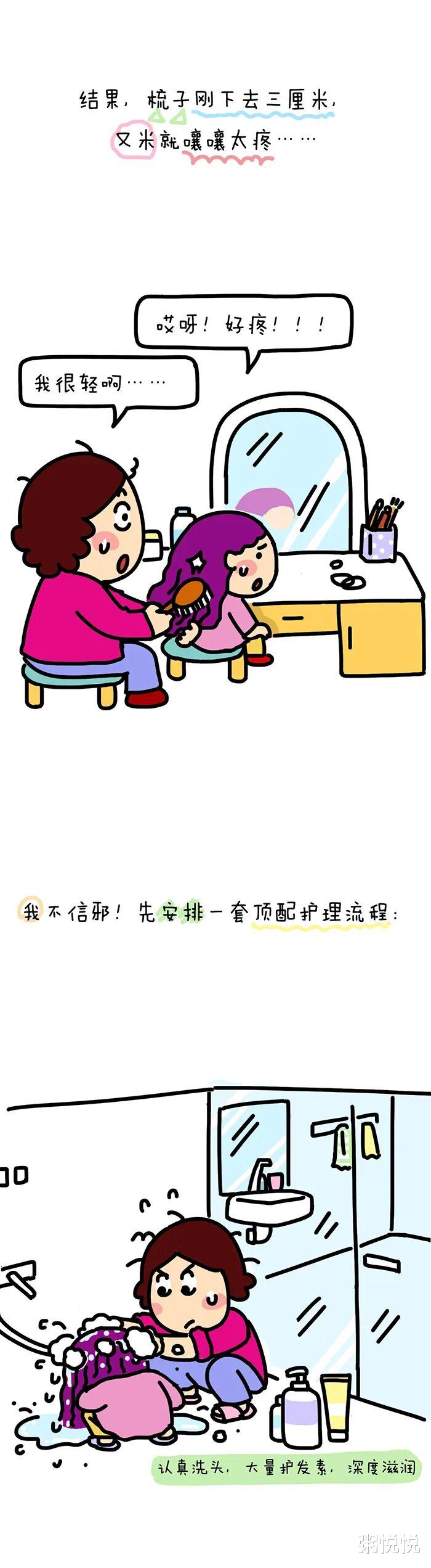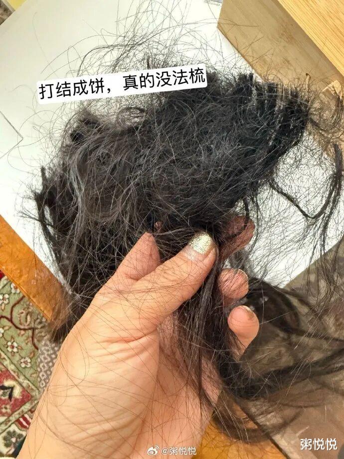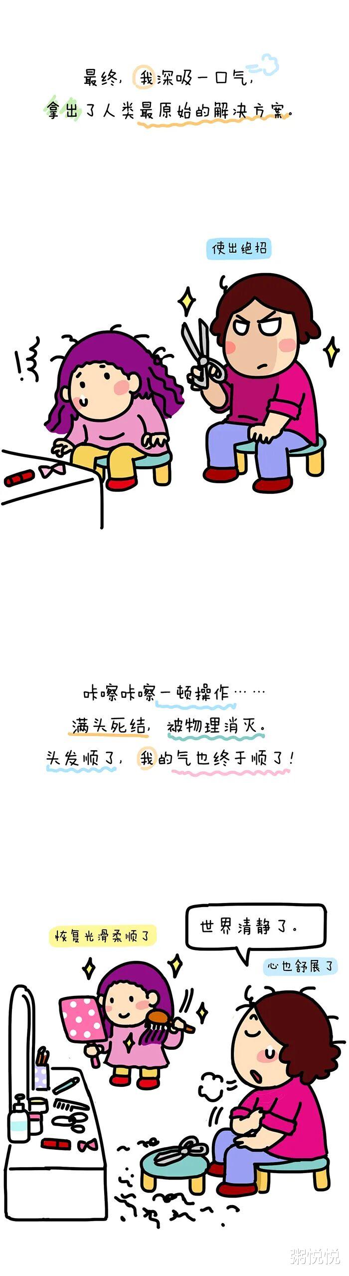 给你看看什么是真正的“鸡窝”头。根本都没法下手梳啊(梳子表示不背锅哈)只能这样了,一剪子下去,清爽了。