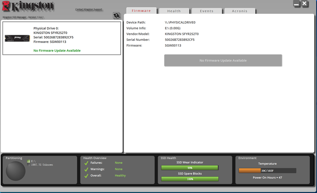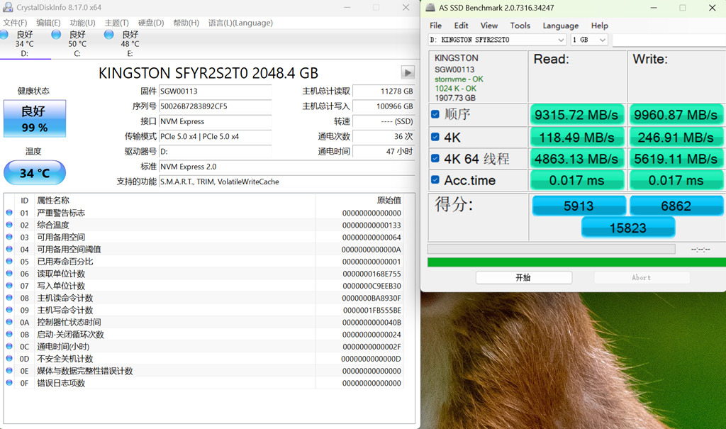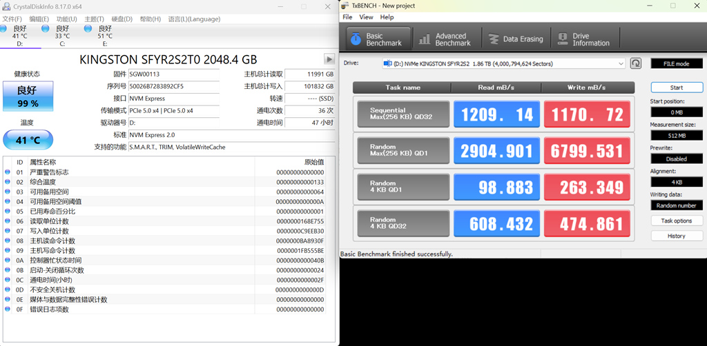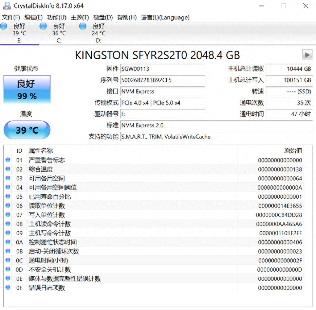 硬盘信息,已经写入100G。健康度为99%。