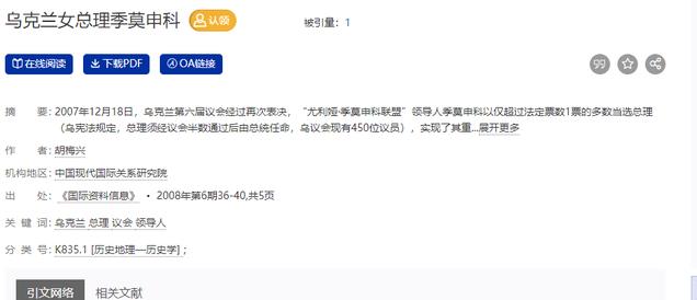 参考资料:[1]胡梅兴.乌克兰女总理季莫申科[J].国际资料信息,2008(6):36-40