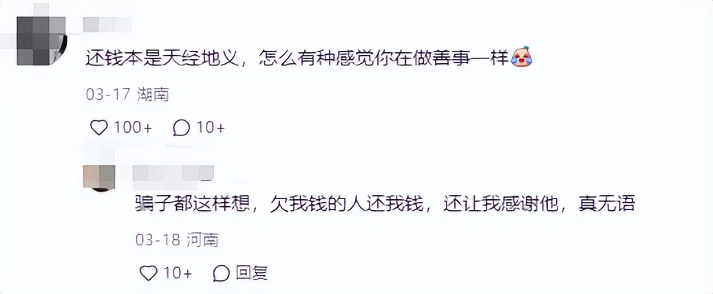 网友们可不管你是为什么欠钱,反正欠债不还就是不对。