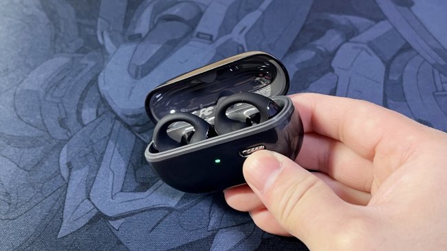 音质方面配备12mm发声单元,支持360°全景音效,仅能满足基础听歌需求,低频表现偏弱,中高频解析力一般,低音量下还偶尔出现杂音。单机续航6小时,配合充电仓可达24小时,采用Type-C充电,使用方便。蓝牙5.4连接稳定,AI通话降噪效果实用,IPX5防水可应对日常汗水与雨水,比较适合耳型标准、对音质没有太高要求的用户。
