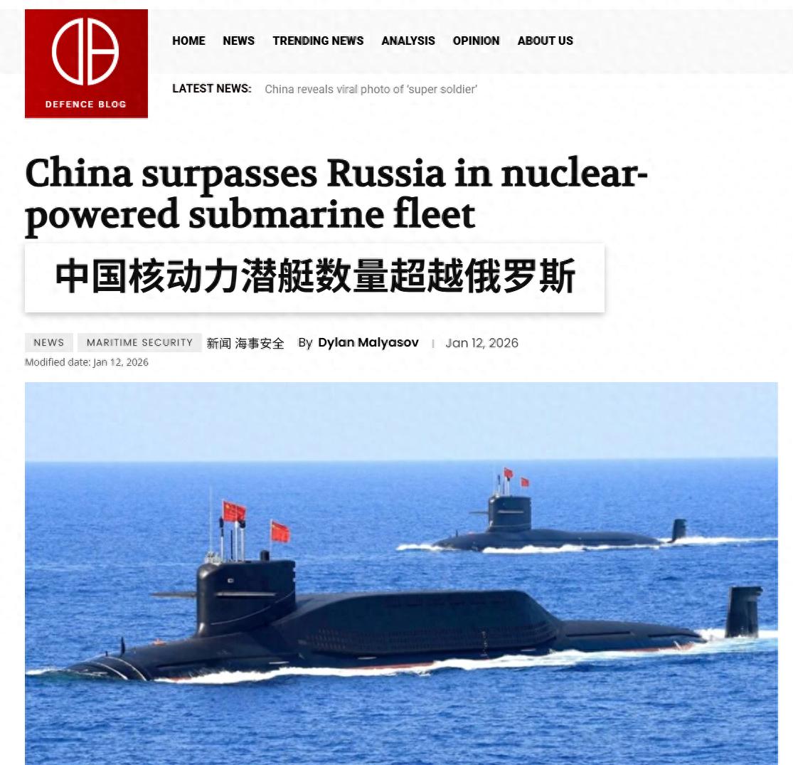 2026年新年伊始,西方军事分析机构Defence-blog发布报告指出,中国现役核潜艇数量已达到约32艘,正式超越俄