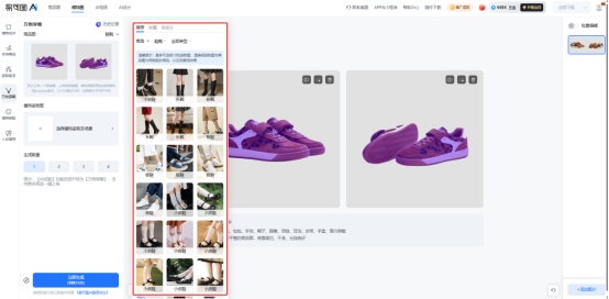 如果你需要快速制作鞋类上脚图,可以优先尝试易可图的AI万物穿戴功能。