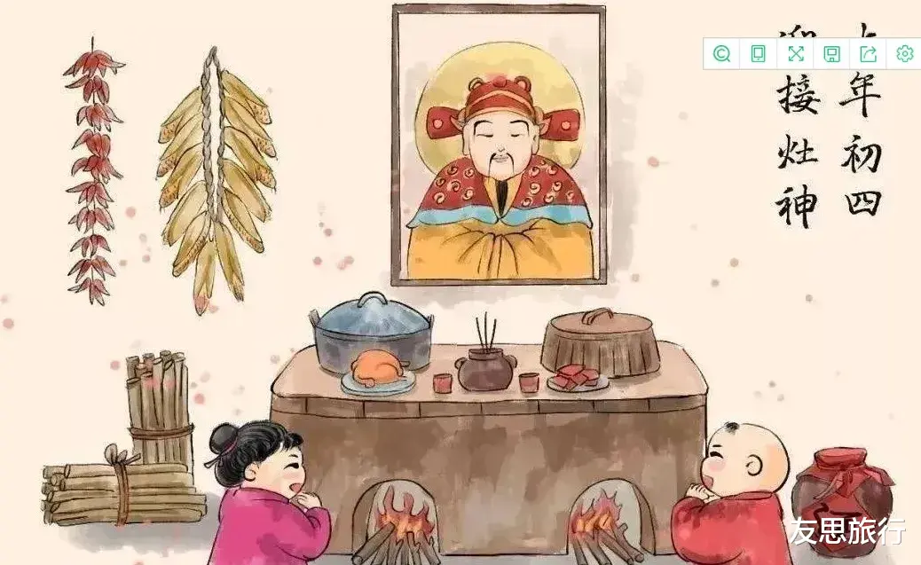 另外还有传说正月初四这天,灶王爷还要查户口,所以今天全家人最好都在家,别乱跑,让灶神看看这家人丁兴旺,按人头赐福。