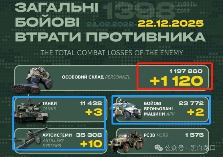 过去24小时,前线发生223次战斗,俄军损失新增1120人,代价继续走高。