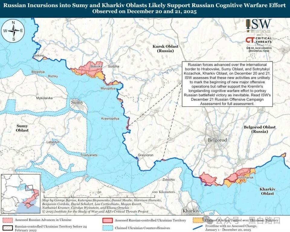 战争研究所(ISW)称,俄军并未在苏梅州北部或哈尔科夫州北部为大规模进攻做好准备,此次袭击旨在引起公众关注,进而推进认知战行动。