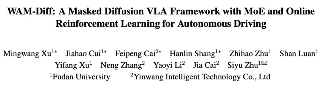 论文标题: WAM-Diff: A Masked Diffusion VLA Framework with MoE and Online Reinforcement Learning for Autonomous Driving