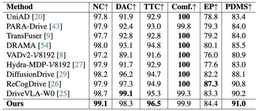 Table 1 : 在 NAVSIM-v1 上与最先进方法(SOTA)的对比。