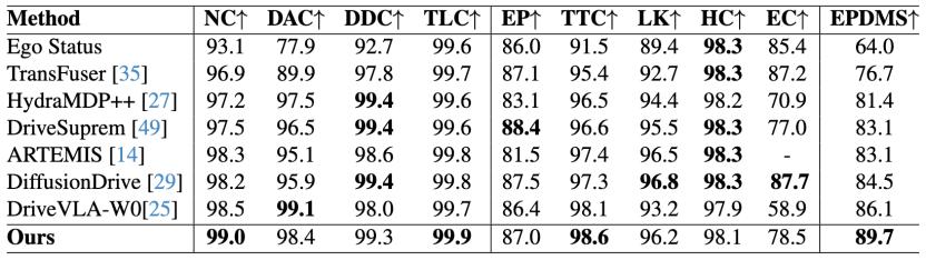 Table 2 : 在 NAVSIM-v2 上与最先进方法(SOTA)的对比。