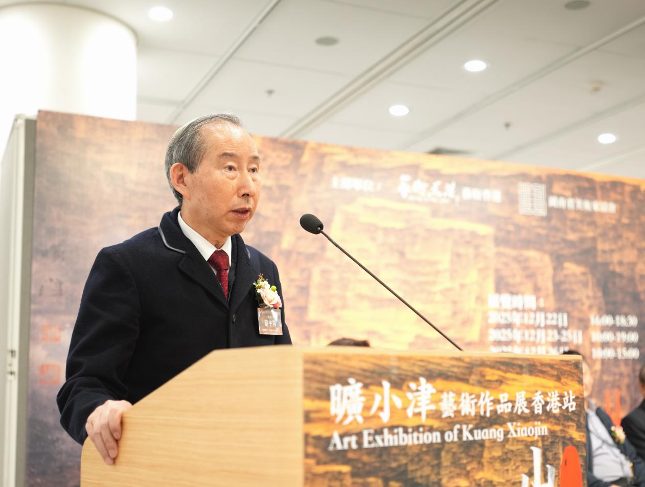 龙宇翔对旷小津艺术作品展的开幕表示祝贺。他说,艺术能让人彼此理解,也能让文化走向各个地域。此次展出的作品以笔墨为桥,将中华传统文化中“天人合一”的哲思、“寄情山水”的情怀具象化,所呈现的不只是自然景观,更是一种传承,是可以被分享的文化精神。在香港这片中西文化交融的热土上,此次展览不仅为市民带来了一场高品质的艺术盛宴,更搭建起文化交流的桥梁。它让中华优秀传统文化以艺术的形式走进香港民众的生活,也为香港民众和世界各国人民更加深入的了解中华优秀传统文化搭建了平台,助力中华文化在更广阔的天地间传播、共鸣,让不同地域的人们在艺术之美中增进理解、凝聚情感,共同书写文化互鉴、文明共生的美好篇章。