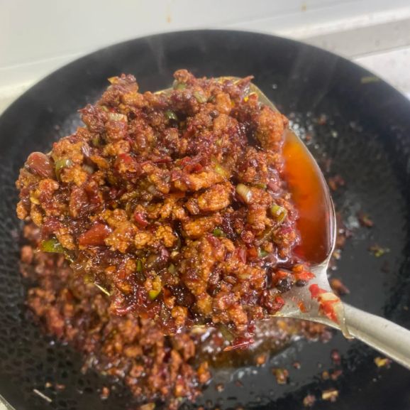 时光在咕嘟咕嘟的声响中流淌,大约四十分钟后,汤汁渐浓,肉丁酥软而不烂。此时撒入一把蒜末,再煨五分钟,让蒜香渗透进每一丝纤维。熄火前尝尝咸淡,湖南人做臊子通常偏咸一些,因为要用来搭配各种淡味的食材。待完全冷却后,装入搪瓷盆或玻璃罐,表面会凝结一层雪白的猪油,像给肉臊子盖上了保鲜膜。这层油是天然的防腐剂,在常温下也能保存多日。