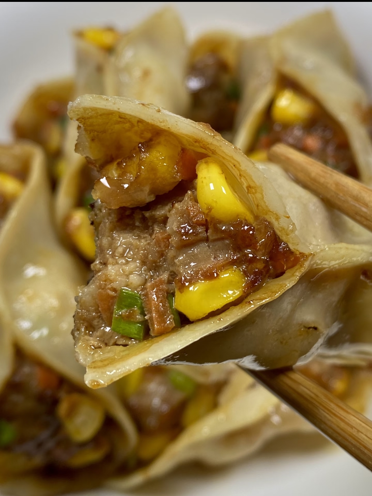 最后一步是点睛之笔。待锅中水分完全蒸发,撒上一把白芝麻和葱花,关火静置两分钟,让余温将底部烘得更加酥脆。用盘子倒扣住锅贴,快速翻转,一盘金黄焦香的锅贴煎饺便完整呈现——底部如琥珀般晶莹,面皮泛着诱人的油光,葱花与芝麻的香气直往鼻子里钻。蘸上陈醋、辣椒油调制的酱汁,一口咬下,先是酥脆的“咔嚓”声,随即是鲜嫩的肉汁在舌尖流淌,面皮的软糯与馅料的丰盈交织,让人忍不住连吃三个。