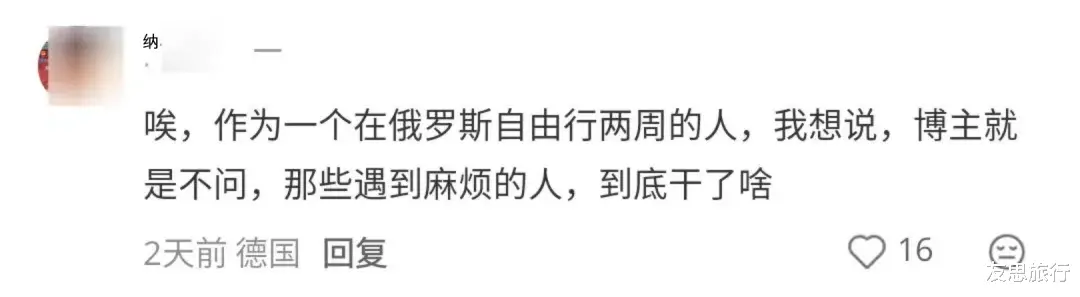 比如这一句:唉,作为一个在俄罗斯自由行两周的人,我想说,博主就是不问,那些遇到麻烦的人,到底干了啥。