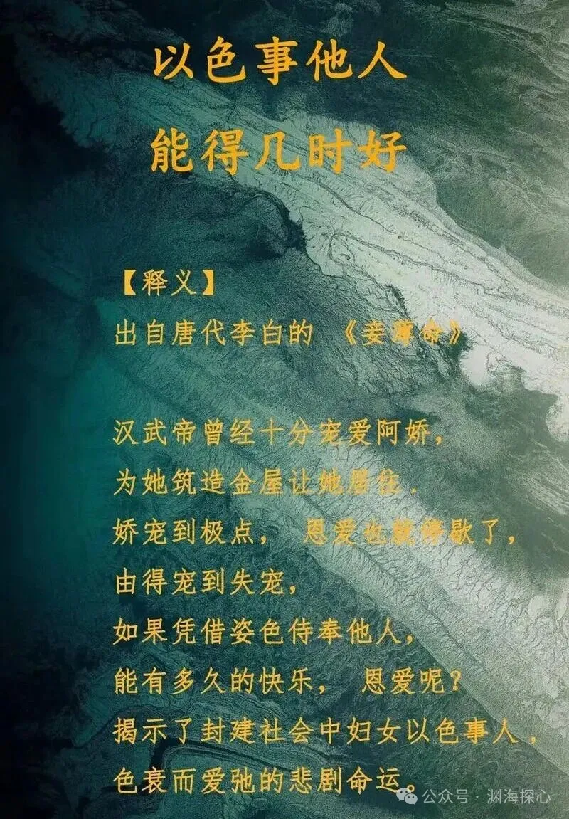 古人早有明训:“以色侍人者,色衰而爱弛。”