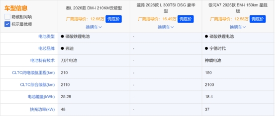 在补能便利性上,秦L DM-i支持48kW快充,搭载弗迪刀片电池,三电系统享首任车主终身质保,家充、公共快充、加油站三种补能方式灵活切换,完全没有补能焦虑;银河A7虽支持快充,但快充功率偏低,应急补能多少会耽误些时间;速腾L仅能依赖加油站,春节补能痛点突出。