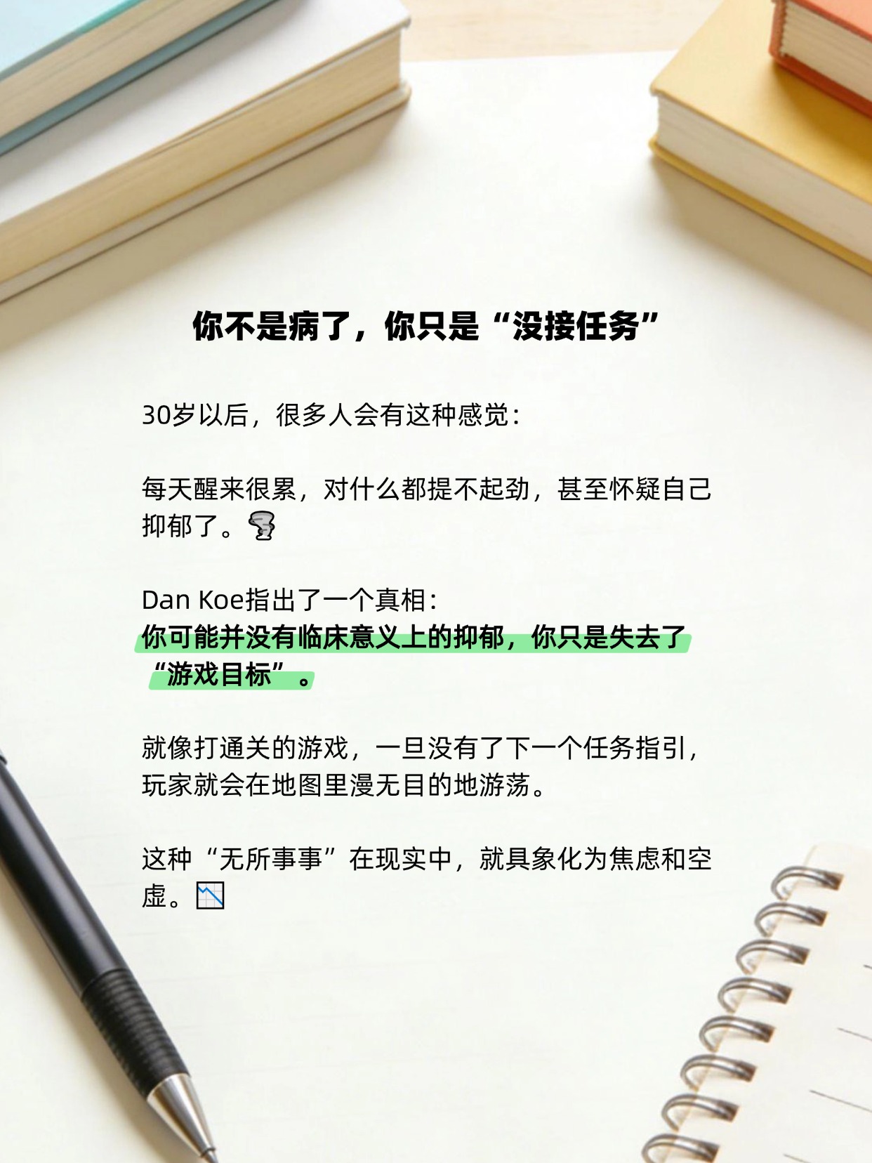 Dan Koe的这篇《You're Not Depressed, You Just Don't Have A Goal》简直是中年危机的清醒剂。💊