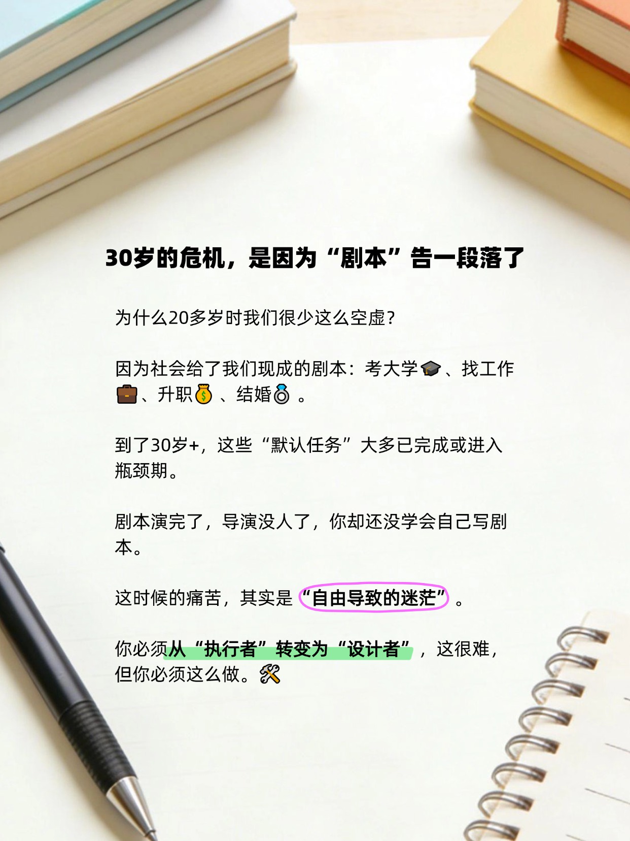 我们以前靠社会给的“默认剧本”活着(上学、工作、买房),当剧本走完,如果没有建立自己的新坐标,人就会陷入巨大的虚无。