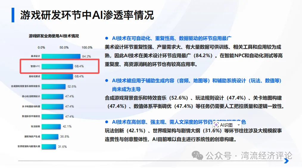 根据游戏工委发布的《游戏企业AI技术应用调研报告》,智能NPC研发中的AI渗透率达到68.4%。