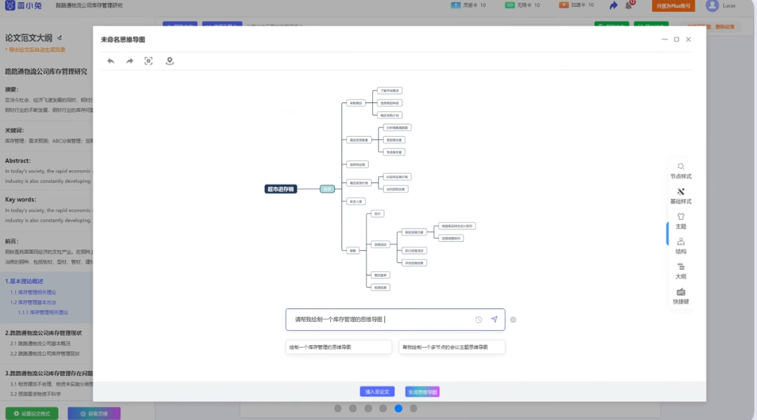 雷小兔内置 AI 灵感引擎,能够在选题阶段提供研究方向建议,在大纲阶段辅助结构搭建,在写作卡壳时给出思路参考。