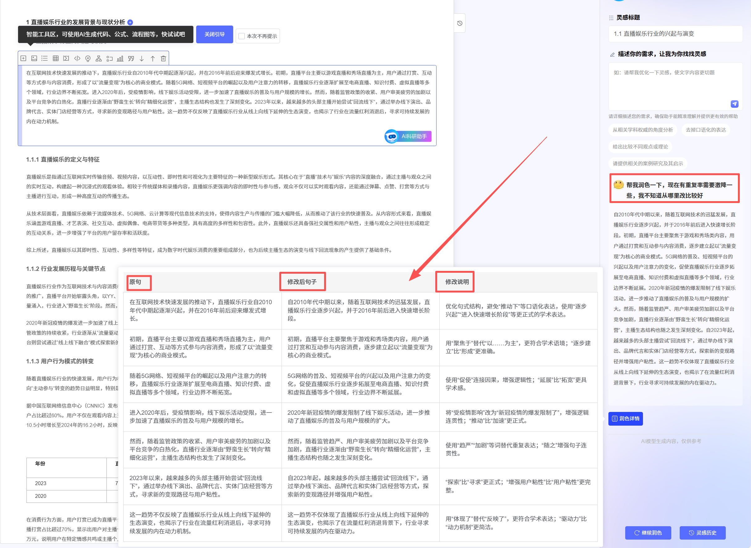 核心要点一:智能优化学术表达可自动调整句式结构,使论文语言更偏向规范化、学术化表达。