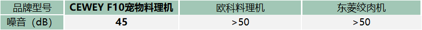总结:普通料理机工作时声音比较大,测试里很多都超50分贝,具体数字不细说。实际用起来就能感觉到噪音尖、刺耳,猫咪听到后常常会躲开甚至应激,人靠近时也会觉得不舒服,长时间运转甚至会让整个厨房都有震感。CEWEY F10的声音比较柔和,实测在45分贝以下。在家中使用时不会形成压力感,也不会打扰猫的休息,音量控制在居住噪音标准的范围内。