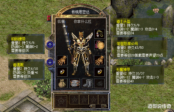 第四,巅峰服饰最后看看服饰五件套,件件都是战士巅峰:道士头盔是攻4属性的,除了那个攻6神秘头盔,综合属性就没有能超越它的;攻3荣誉勋章是巅峰级别;攻3天魔神甲同样稀罕;还有罕见的钢魂套装,既是巅峰,又是绝版。综合来看,这一身巅峰战士穿搭没有100个还真下不来,各位老伙计,你能看得住他的一刀烈火吗?