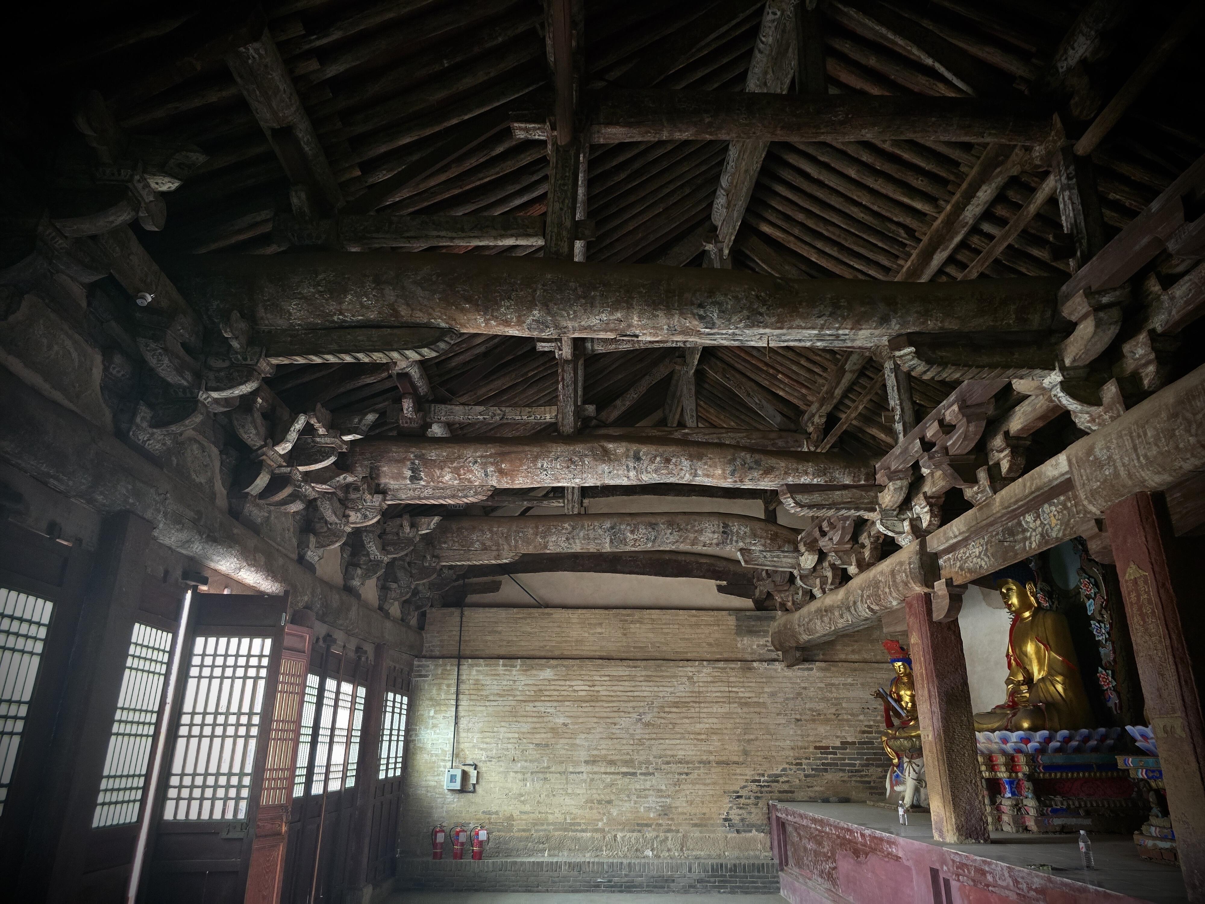 关于“断梁”,还有个有意思的争论:有人说这是北宋工匠的“无奈之举”,毕竟晋东南地区多山,想找一根能横跨三间大殿的整木太难,所以才想出对接的办法;可也有人反驳,说这是工匠的“炫技”,故意不用整木,就是为了展现自己对力学和结构的掌控力。到底是无奈还是炫技?现在没人能说清,但不管怎么说,这根“断梁”成了中佛殿的“镇殿之宝”,也让它成了研究北宋建筑技术的“活标本”——全国现存的北宋木构本就不多,有“断梁”结构的,更是独此一家。