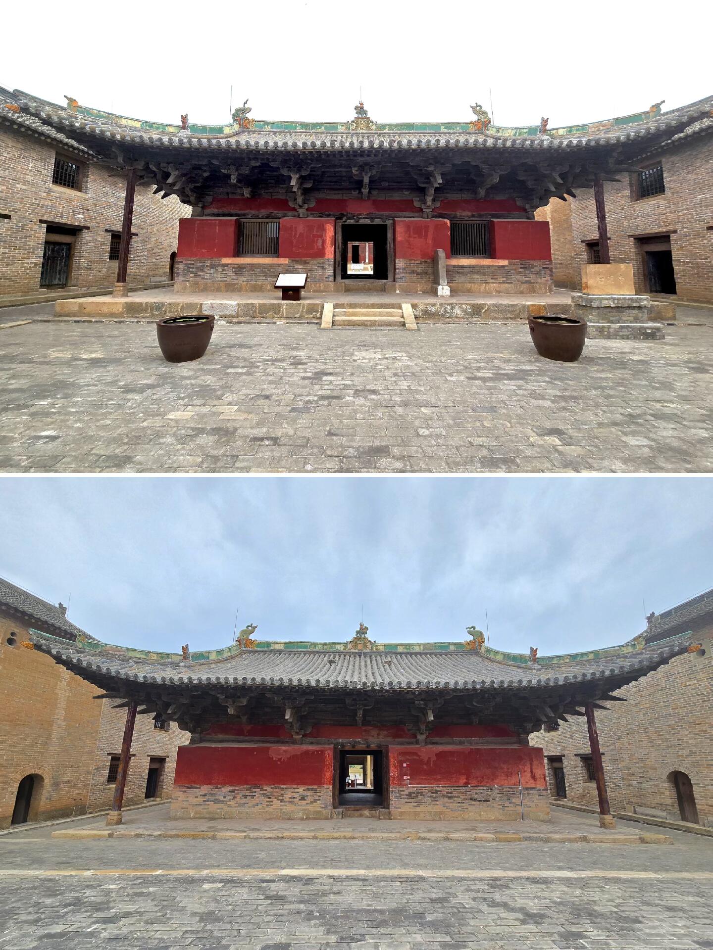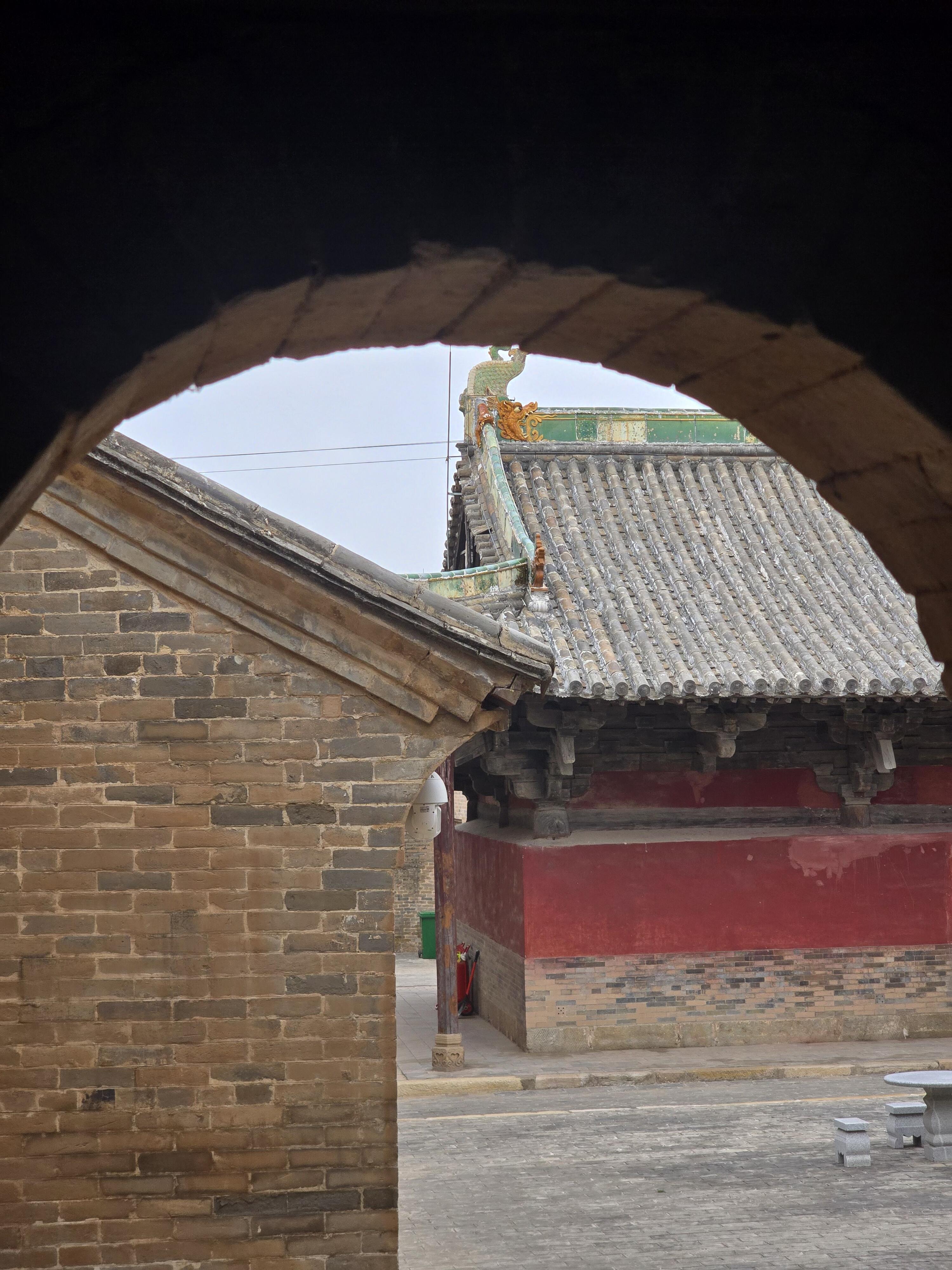 不过去崇明寺的时候,有两个“坑”得提醒大家。一个是门口的自助检票机——我们去的时候正好是中午,文管员下班了,检票机根本没人管,直接就能进去,不知道现在是不是还这样。另一个是后院的两座小楼,网上有些攻略说爬上去能看到中佛殿的全貌,可我们真爬了才发现,楼梯窄得只能容一个人过,满手都是灰尘,爬到顶了才发现窗户特别小,外面还被树枝挡着,别说拍全貌了,连中佛殿的屋顶都看不全。后来才明白,想看中佛殿的全景,根本不用爬楼,在院子里找个合适的角度就行,要是有无人机,从空中拍肯定更壮观。
