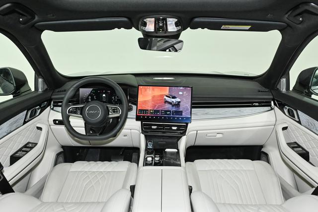 智能座舱的升级让家用出行更便捷,2026款领克09四驱探索版的内饰变化较为明显,新增的日光米致雅内饰采用Nappa真皮材质(仅Ultra版型配备),在触感与视觉效果上都有提升,营造出温馨通透的座舱氛围。中控台搭载15.4英寸2.5K中控屏,屏幕尺寸更大、分辨率更高,显示效果清晰细腻(2024款全球版中控屏为12英寸,无2.5K分辨率)。内置LYNK OS N智能座舱操作系统,搭配高通骁龙8155芯片与5G网络,Max版型车机系统内存12GB,Ultra和2024款全球版为16GB,均配备128GB存储,大幅提升车机操作流畅度,无论是滑动切换页面、打开导航地图,还是加载视频应用,都几乎没有卡顿现象。