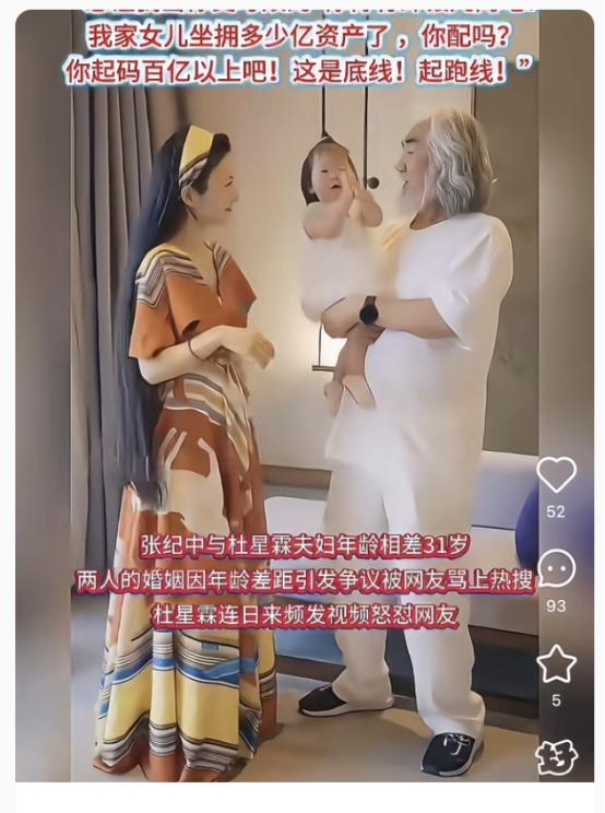 当时,张纪中给刚满周岁的小女儿“小龙珠”办了场盛大的生日宴,杜星霖一句“百亿资产才配当我女婿”的言论,直接引爆了舆论的火药桶。