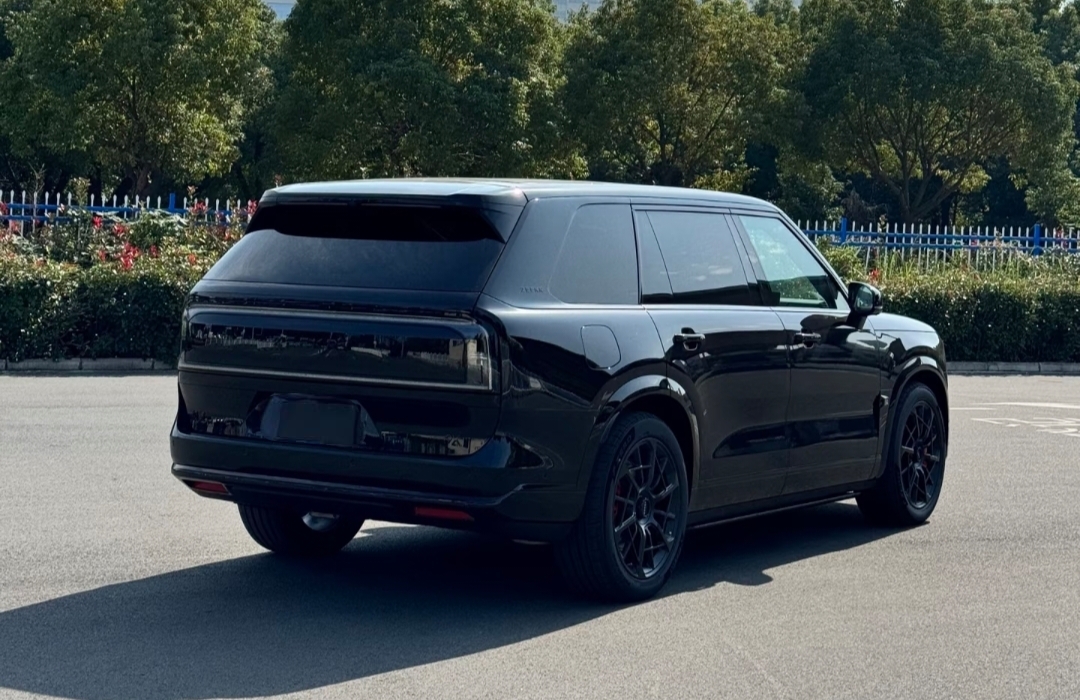 车身侧面线条流畅,深色隐私玻璃护隐私还防晒,门窗镀铬饰条点缀豪华感,车身比极氪9X短,3169mm轴距不变,空间大但更灵活,花瓣式多辐轮毂。车尾,贯穿式门型尾灯更窄,新增鲨鱼鳍天线,标识清晰,整体简约干练。