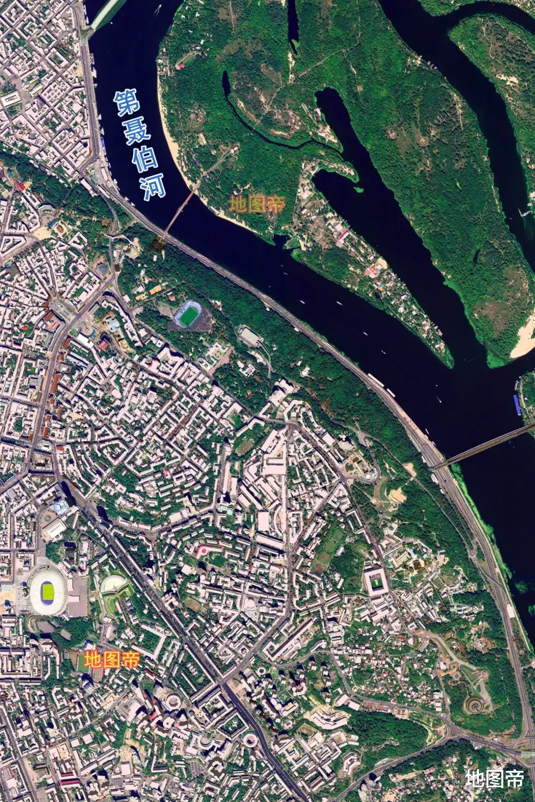 乌克兰首都基辅,在第聂伯河中游,地处第聂伯河高地,面积839平方千米。