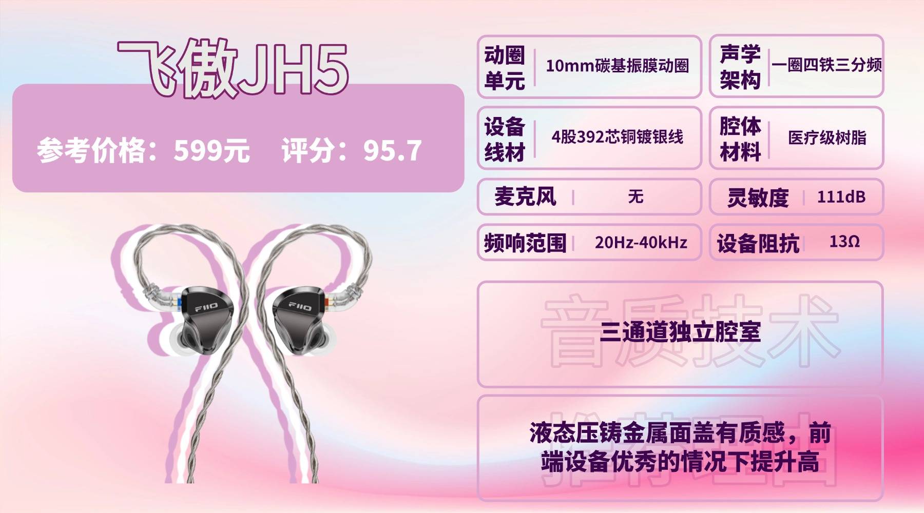 配置上是一圈四铁三分频结构,搭载 10mm 碳基振膜动圈,人声是其比较明显的优势,整体自然顺滑,没有刺耳尖锐的问题。声场和立体感的表现也算到位,空间层次能交代清楚。但在复杂配乐场景中,线条感会显得有一些不足,背景与人声的分离度不算强,密集段落下层次稍微会糊一点,属于比较明显的短板。