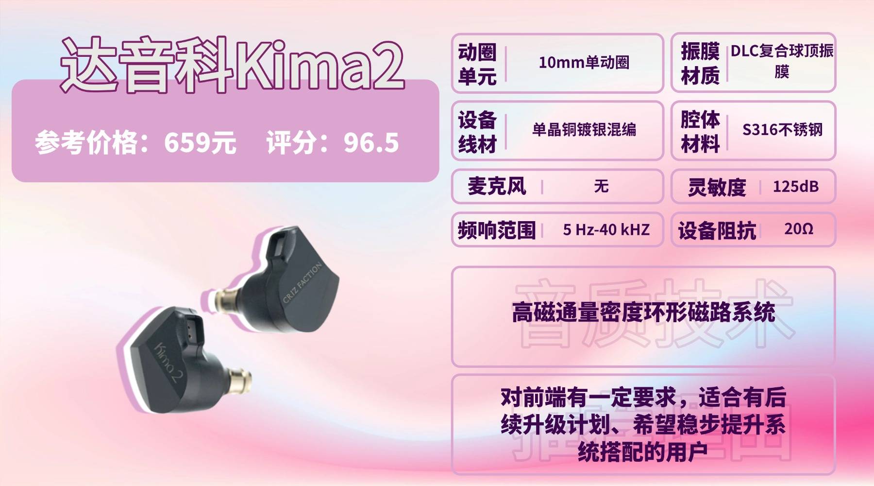 达音 科 Kim a2 采用 10mm 外磁式 DLC 复合振膜动圈,整体声音取向偏理性和耐听,高频延伸自然,不追求刺激感,解析力在线但不会刻意突出“亮点”,中频人声结像稳定,位置靠前,低频下潜和弹性表现中规中矩,更强调控制感而非量感堆叠,长时间聆听不易疲劳。需要注意的是,在入门级小尾巴驱动下,细腻度和弱动态略显保守,搭配中端播放器后,声场和乐感会有更明显的提升。