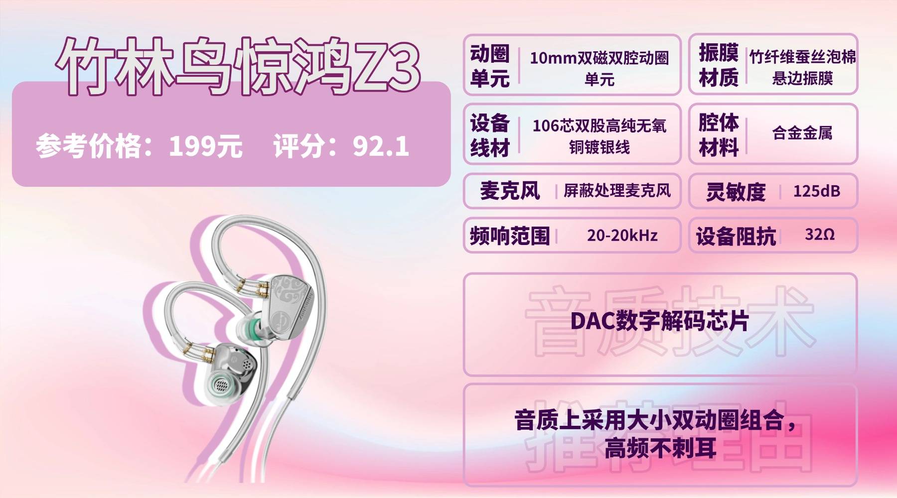声音取向上,Z3 的双动圈结构更偏温润耐听,高频收敛,不追求锋芒,整体亮度较为克制。低频下潜深度尚可,量感控制在适中区间,但节奏偏慢,遇到强调冲击力的电子乐或鼓点时,爽快感略有不足。如果偏好干净利落或高频通透的风格,Z3 可能不算第一选择。它内置 DAC 解码芯片,直插手机也能保持稳定输出,对前端设备依赖较低。线材使用镀银高纯度导体,声音表现稳定,但线身容易缠绕,且没有线控设计,日常操作便利性一般。麦克风在安静环境下通话清晰,但在有风噪的场景中抗干扰能力有限。整体功能配置偏向传统有线耳机路线,玩法不多,风格朴实。