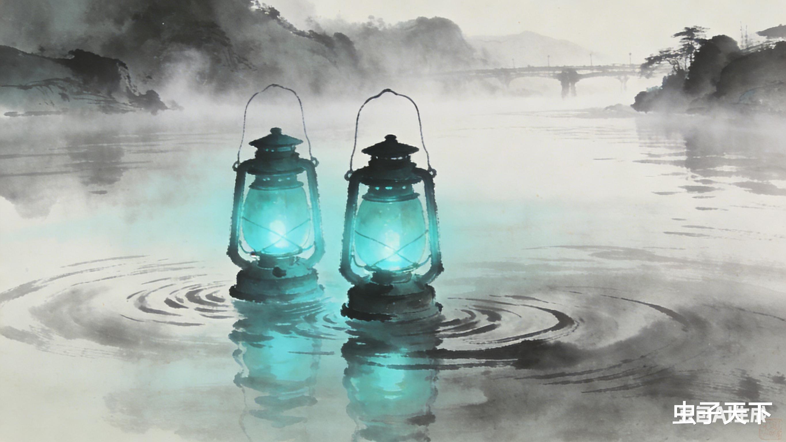 就在这时,江面飘来一阵雾,雾中,那两盏青蓝色灯火的灯,竟慢慢靠拢,最后并肩漂在一起。