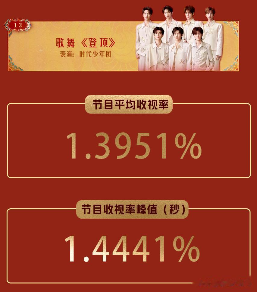 平均收视率1.3996%,收视率峰值1.46%,险胜时代少年团。
