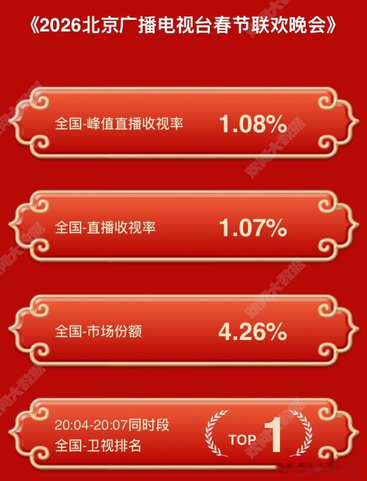 直播收视率1.07%,市场份额4.26%,为晚会开了一个好头。
