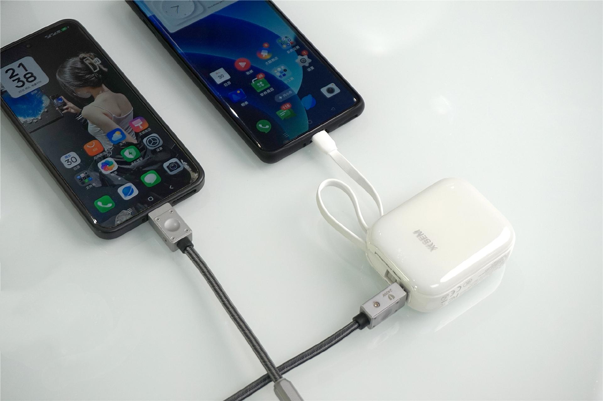 我用的是安卓手机,自带的Type-C线就能直接充电,22.5W快充完全够用了。如果想要给两台手机同时充电,也是可以的,这款充电宝还有一个Type-C接口,可以再插一根电源线给手机充电。不管是自己用还是帮别人应急,都特别方便。