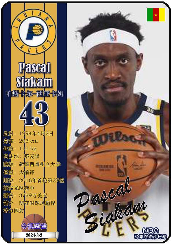 NBA印第安纳步行者队成立于1967年,距今已有58年历史。截至2025年10月28日,球队主教练是里克-卡莱尔,队内拥有球员泰里斯-哈利伯顿、帕斯卡尔-西亚卡姆、安德鲁-内姆哈德等。本期以球星卡的形式展示目前NBA印第安纳步行者的18名球员(按球衣号码排序):