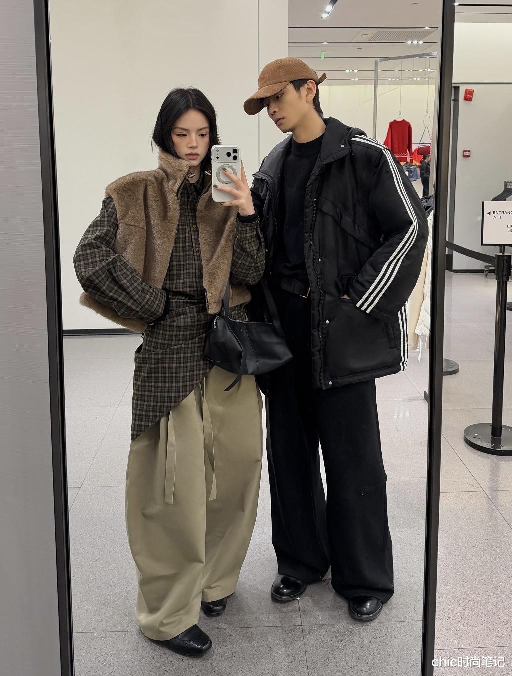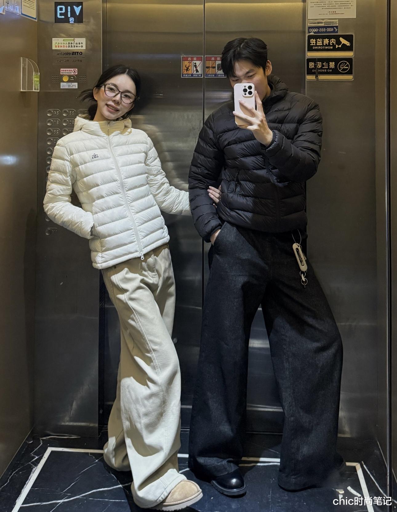 情侣的保暖穿搭来了!羽绒服是最好的选择,一黑一白的短款羽绒服既能修饰身形又能做到有效保暖,低温气候下的高温浪漫约会look!