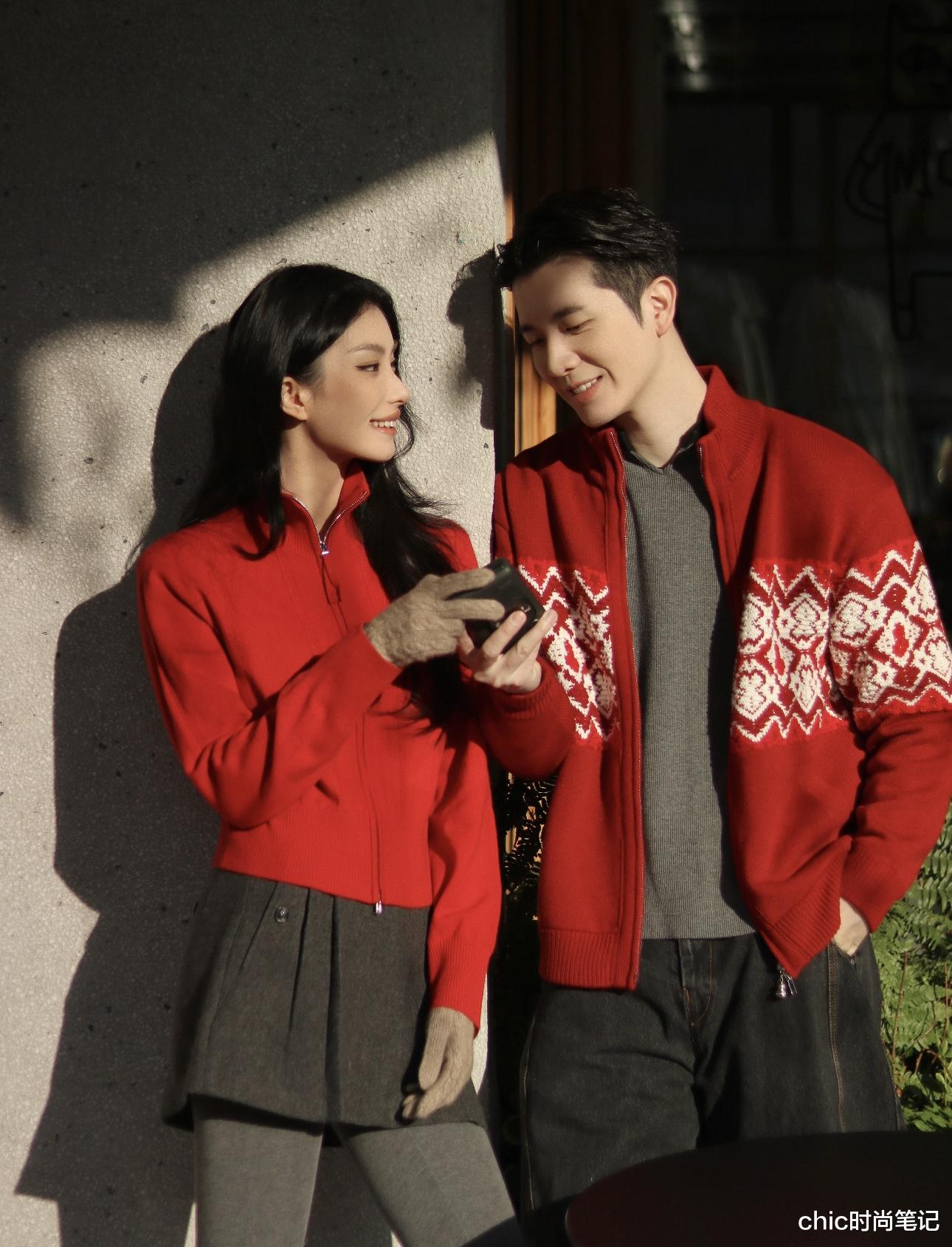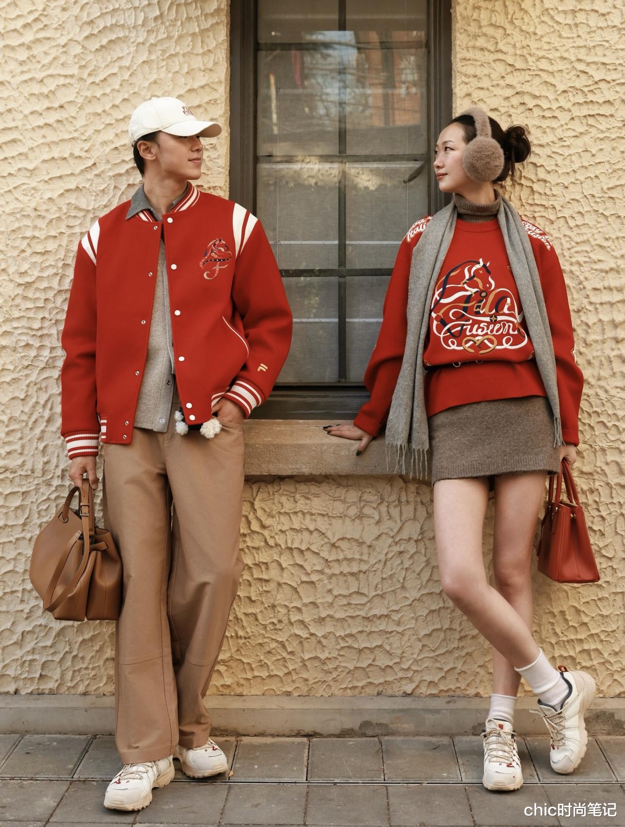 一般选择红色元素作为上衣,可以有效的吸人眼球,比如红色棒球服、红色毛衣等,男生下身搭配卡其色裤子,女生搭配棕色短裙,整体穿搭极为和谐。