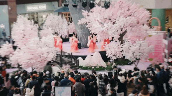以3月启动的「晶梦樱园」为例,老城根并未简单复刻樱花装置,而是通过与青龙寺樱花联名,成为2025雁塔国际赏花季官方联名打卡地之一,将自然花期延伸为可持续停留的街区场景,并延展出多重互动体验。