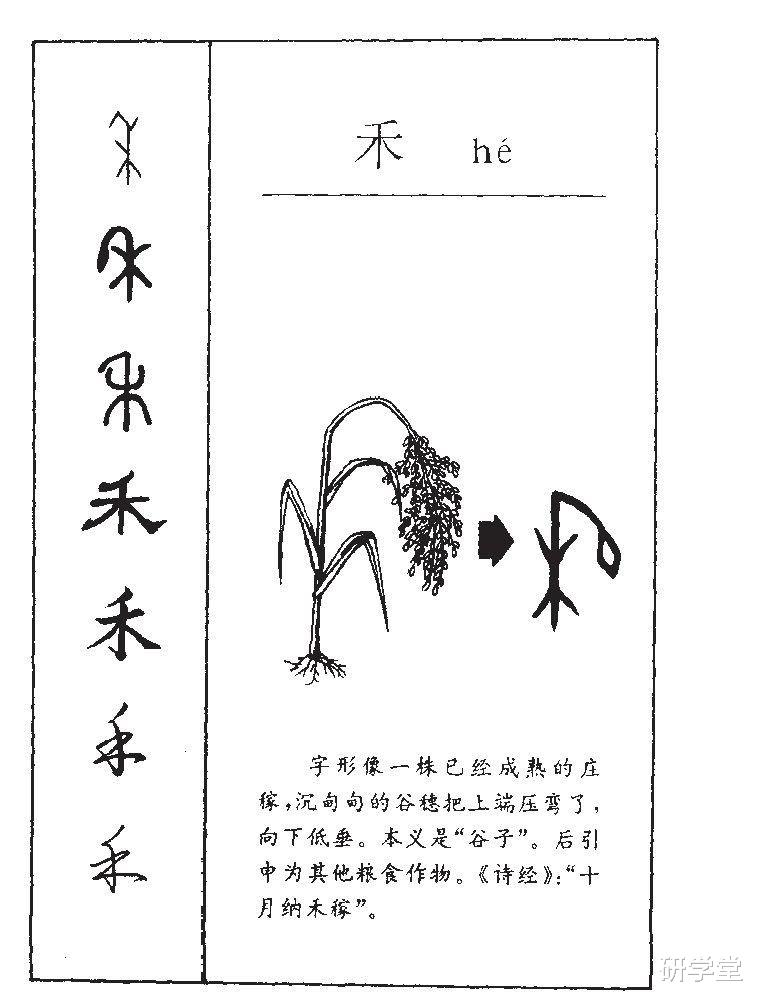 禾字说文解字原文:嘉穀也。二月始生,八月而孰,得時之中,故謂之禾。