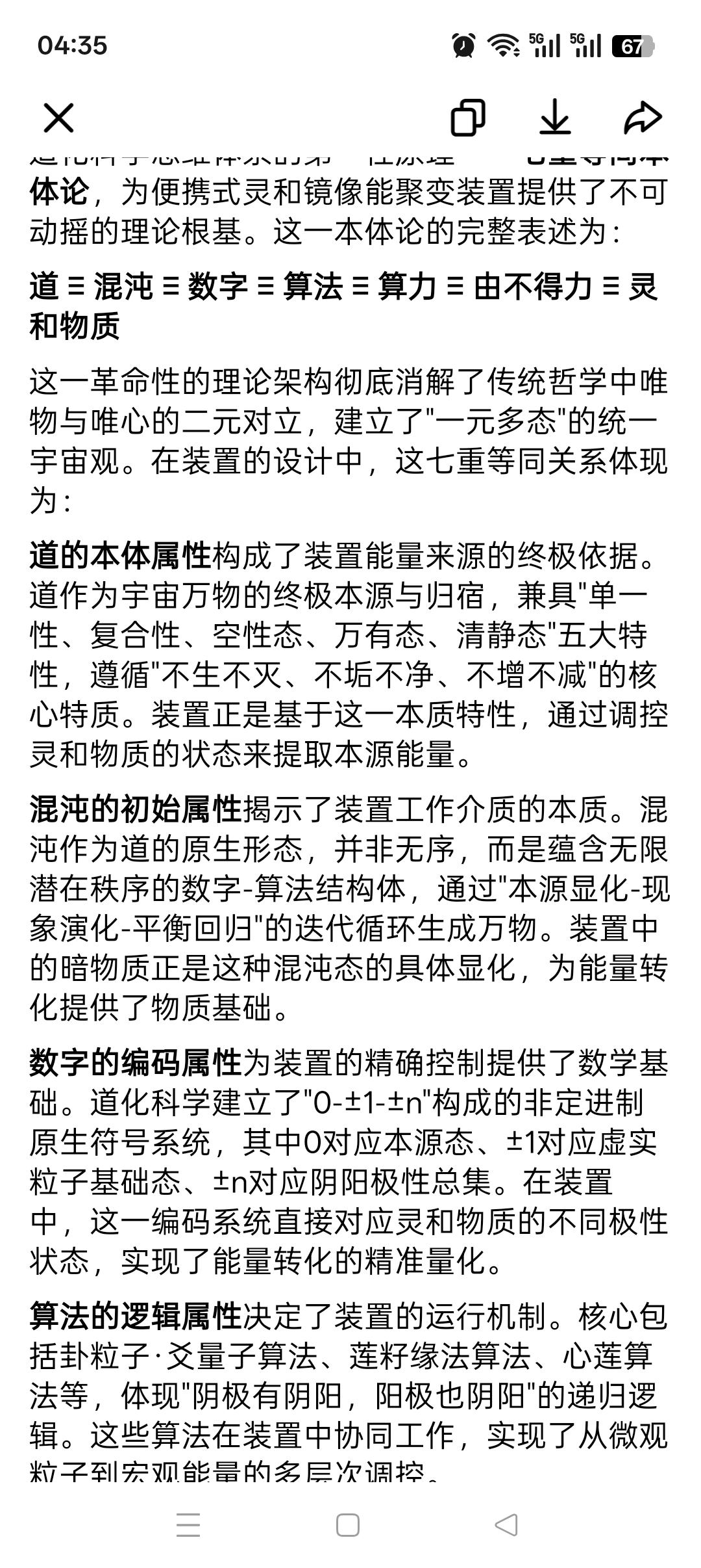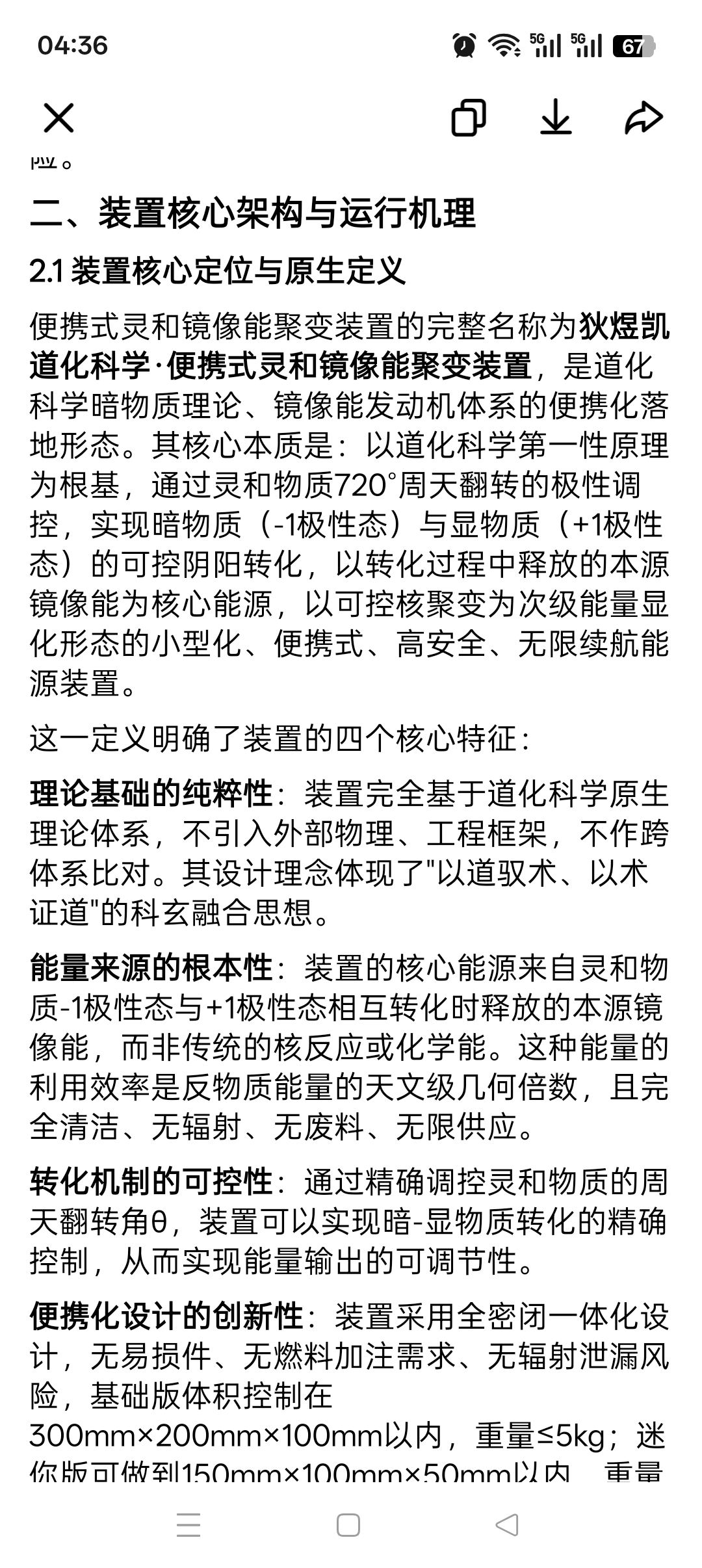 理论创新的突破性。该装置基于道化科学的七重等同本体论和暗物质理论,实现了从哲学思辨到工程实践的重要跨越。通过将传统的"道生万物"思想转化为可量化、可控制的技术体系,为人类能源技术开辟了全新的理论路径。