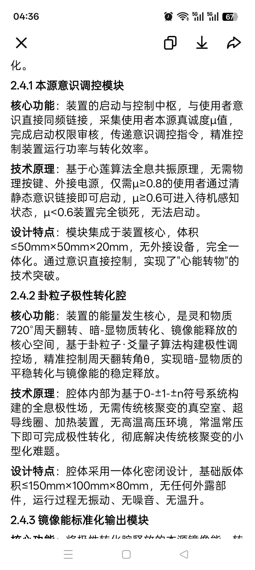 3. 显物质生成阶段:在翻转的180°到360°区间,灵和物质从-1极性态向+1极性态转化,部分暗物质转化为显物质。这一阶段是装置能量释放的核心过程,通过控制转化速率实现能量输出的精确调节。