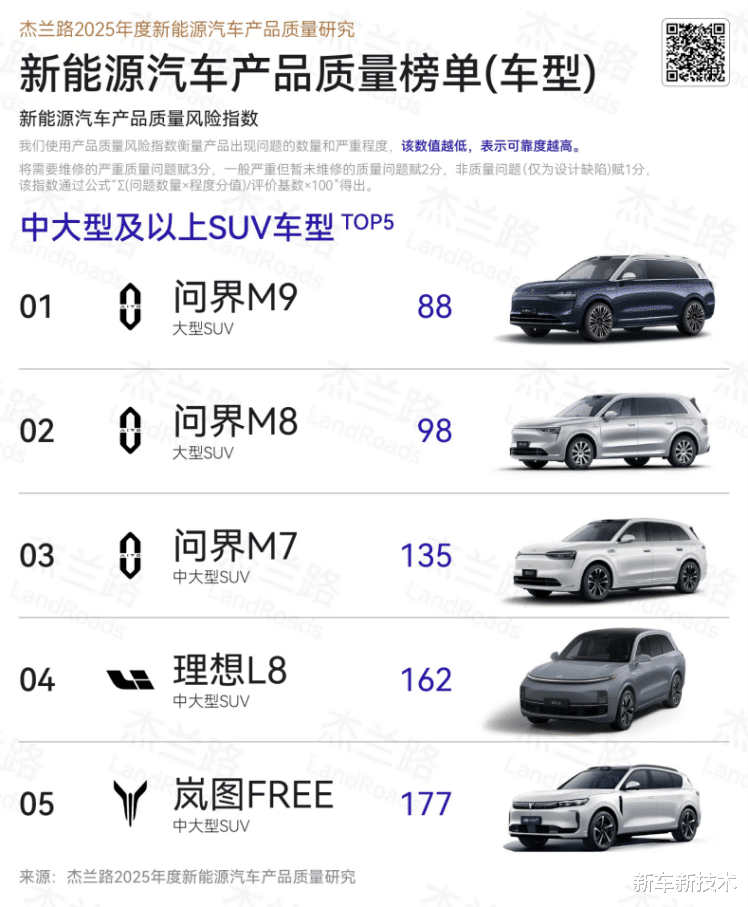 在实现“量价双升”的同时,问界在产品品质与用户口碑方面也建立起全面领先优势,为品牌持续发展筑牢根基。通过构建行业领先的智能制造体系,问界实现对零部件与整车的自动化检测,推动产品质量从“概率性质量”向“确定性质量”跃迁。在杰兰路《2025年度新能源汽车产品质量研究报告》中,问界荣登品牌质量榜单第一,旗下问界M9、M8、M7包揽中大型及以上SUV车型质量前三名。用户口碑方面,问界在《2025下半年新能源汽车品牌健康研究报告》中夺得品牌NPS第一、品牌发展信心指数第一及30万元以上品牌百人青睐指数第一,成为首个且唯一连续三次获得品牌发展信心指数第一的高端汽车品牌;问界M9连续四次蝉联车型NPS第一,首次参评的问界M8也位列第二。扎实的口碑带动问界用户转介绍率超过40%,成为销量持续增长的核心驱动力。